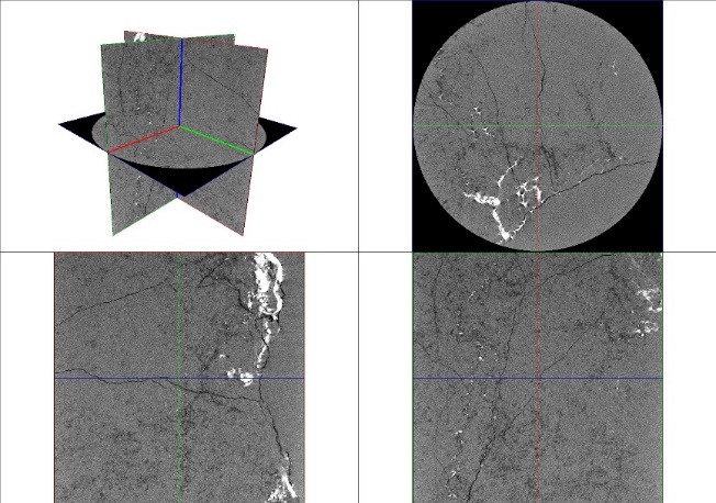 微米CT扫描实验室 一、实验室简介 本实验室隶属于英国威廉集团实验中心。主要功能是:岩石微观结构计算机断层扫描图像采集。实验室位于综合实验楼B106。 二、仪器设备 微纳米双射线管岩心CT扫描系统 仪器设备(型号):微纳米双射线管CT扫描系统V|Tome|X S180 & 240 品 牌:德国 GE 三、主要参数 (一)微纳米双射线管CT扫描系统 微纳米双射线管CT扫描系统由射线管、样品转台和探测器三大核心部分构成;根据样品尺寸调整扫描电压、电流、扫描张数、暴光时间等参数来完成样品测试。 表1. 微纳米CT基本性能参数 参数 测试范围 样品大小 1-260mm(样品直径) 扫描电压 微米管:10-240 kV 扫描电流 微米管:5-2800µA 扫描张数 1400-1800 暴光时间 500-2000ms (四)成果介绍 对扫描图像进行重构后,得到微样本三维灰度图像。 由于CT图像的灰度值反映的是岩石内部物质的相对密度,因此CT图像中明亮的部分认为是高密度物质,而深黑部分则认为是孔隙结构。通过ImageJ、AVIZO等软件对灰度图像进行区域选取、降噪处理,将图像分割与后处理可提取出孔隙结构模型、孔隙度、孔隙半径、喉道半径、配位数等参数。 某样品微米CT扫描图像 某样品微米CT扫描剖面图(三维切片,俯视图、XZ方向、YX方向) 某样品二值分割图像(黑色-孔隙;白色-颗粒) 某样品三维孔隙网络模型 某样品孔喉结构特征 四、实验室责任人 韩登林 联系电话:18601309981 五、实验预约流程 需与实验室责任人确定样品类型、数量、测试时间后,下载填写“分析测试申请表”,在开展实验当天提交纸质申请表。样品要求:圆柱状岩石样品,规格2.5cm(φ)*4cm(L)。