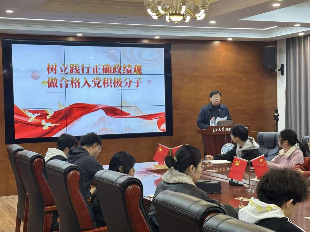 (通讯员 姚佳)为深入开展树立和践行正确政绩观学习教育,加强入党积极分子思想政治建设,引导青年学子端正入党动机、筑牢党性根基,3月27日上午,学院党委书记杨全辉在石油科技大楼C201会议室为学院入党积极分子讲授题为《树立和践行正确政绩观 争做合格入党积极分子》的专题思政课。