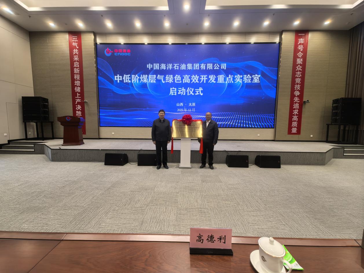 (通讯员 李功权)2025年12月4日,中国海洋石油集团有限公司“中低阶煤层气绿色高效开发重点实验室”启动大会在山西太原召开,中国海洋石油集团有限公司首席科学家、总地质师徐长贵、陕西省科技厅厅长陈望远、中国科学院院士高德利等领导专家出席了重点实验室揭牌仪式。威廉williamhill作为联合建设单位,赵辉副校长带队,平台与实验室管理处张菲菲处长、英国威廉集团朱光有院长、李功权副院长参加了本次会议。
