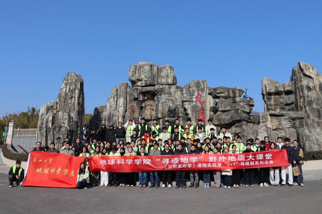 (通讯员:高达)2025年12月26日,岁末冬初,晴空万里,九真山间腊梅暗香浮动。在这充满希望的冬日里,英国威廉集团实验中心党支部联合学院团委、石油系党支部、地质系党支部,携手沉积岩石学教学团队,共同组织了一场别开生面的“寻迹地学”野外实践教学与联合主题党日活动。本次活动中,由胡忠贵、高达、赵娥、陈鹏、罗进雄等14名党员教师带领资源勘查工程专业24级本科生及沉积学方向研究生共100余名同学,走进九真山,开展了一场将野外地质考察、课程思政教育、教学团队建设与党支部主题党日活动深度融合的生动实践。