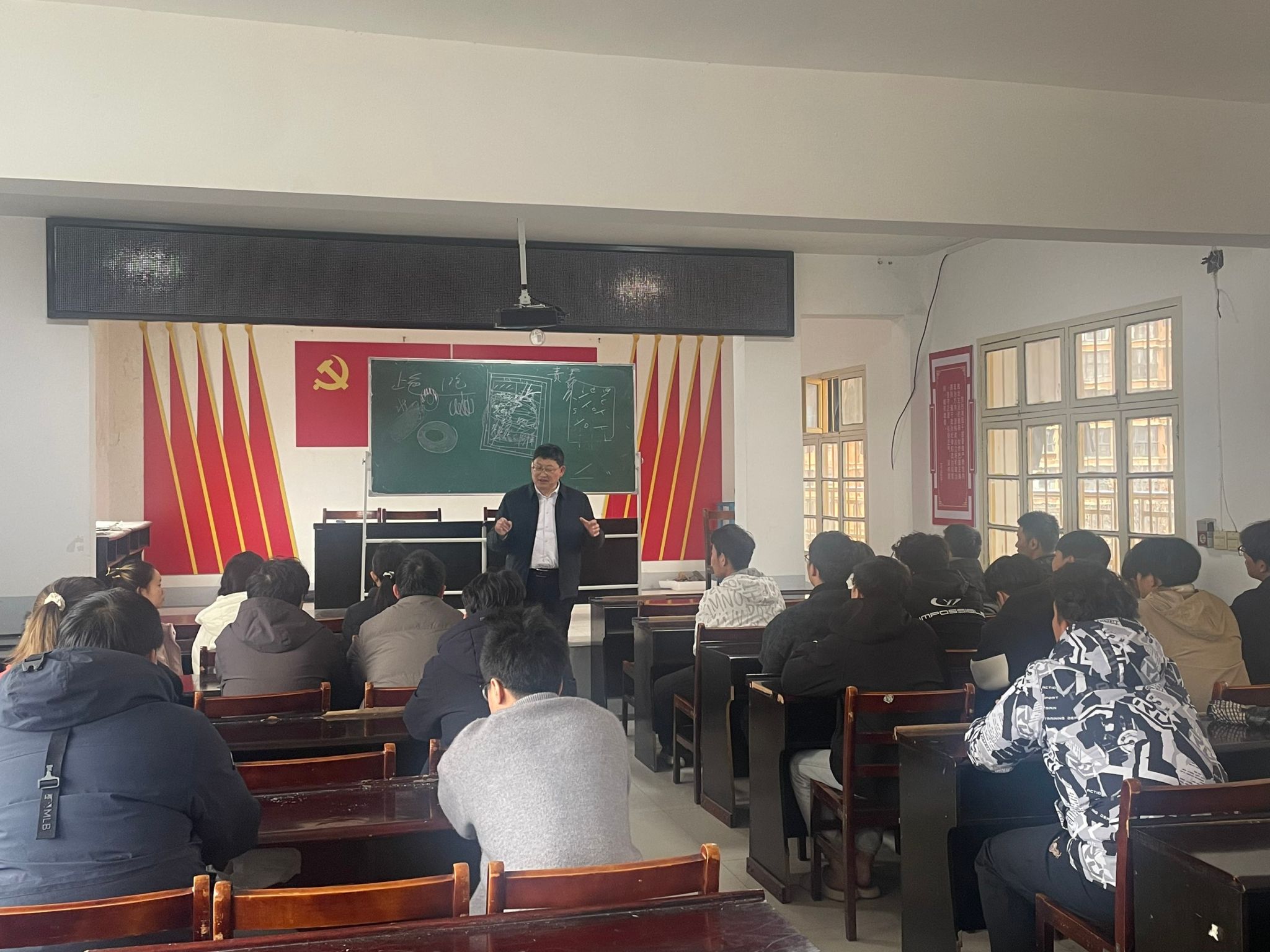利用实习间隙,朱光有院长还专门为自己担任班主任的资工(卓越)22301班召开了主题班会。班会上,朱院长结合当前大三学年的特殊性,向同学们提出了殷切期望。“这一年是你们大学生涯中最关键的节点。”朱院长语重心长地指出,大三学生既要在野外实习中锤炼专业本领,更要站在人生的十字路口上,认真思考未来的发展方向。他特别强调,同学们要珍惜刘家场实习的宝贵机会,在野外实践中加深对专业知识的理解,每日结束野外考察后,及时整理野簿,复盘当天所学内容。同时,朱院长结合自身经历与行业发展趋势,深入浅出地分析了当前地质类专业的发展前景与考研必要性。