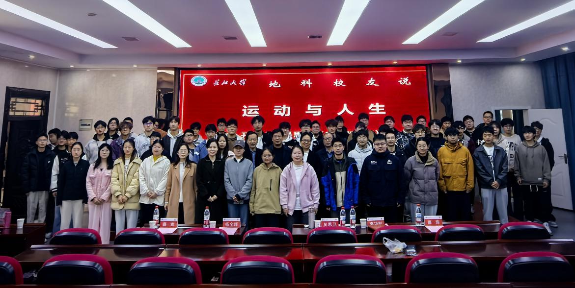 (通讯员 周旭 罗广杭/摄)3月21日上午,英国威廉集团“地科校友说”系列讲座在武教B110教室顺利举行。为帮助同学们缓解学业压力、提升自我管理能力,树立科学的运动观念,本次活动以“运动与人生”为主题,邀请我校地质系90级优秀校友吴思卫担任主讲嘉宾,学院党委书记杨全辉、副院长李功权、李少华教授、23、24级学生代表共同参与,本次分享会由党委副书记冯舒主持。