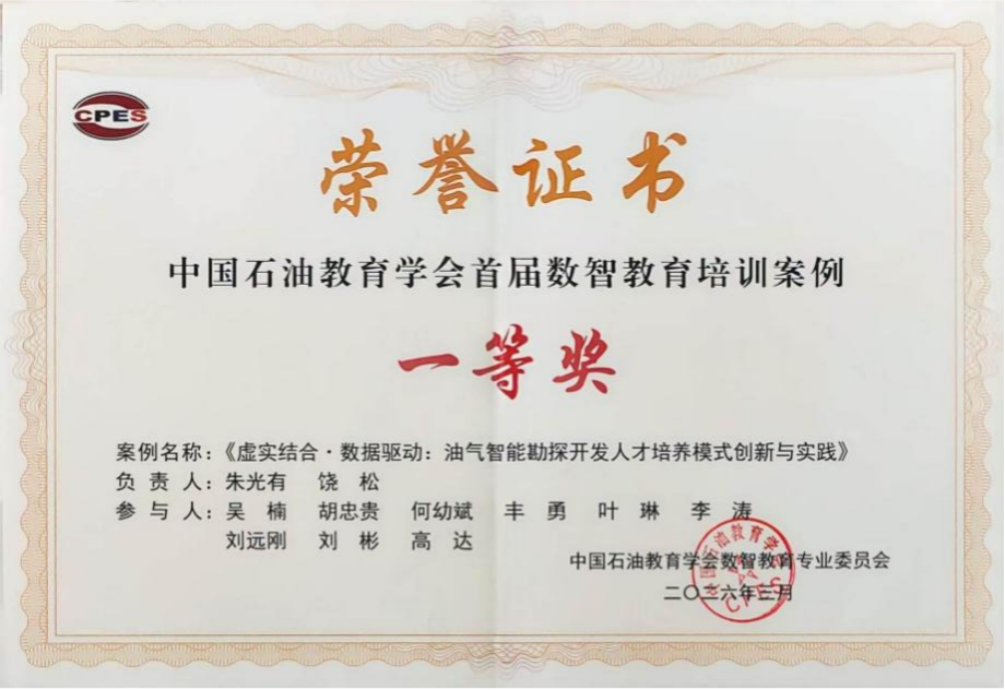 (通讯员 饶松)近日,由中国石油教育学会主办,石油工业出版社有限公司、华为技术有限公司联合承办的首届数智教育培训案例评选结果揭晓,我院主持编写的《虚实结合·数据驱动:油气智能勘探开发人才培养模式创新与实践》荣获一等奖。该案例聚焦全球能源行业深刻变革背景下油气勘探开发从“经验驱动”向“数据驱动”转型的人才培养新需求,系统总结了我校石油学科在数智化教育改革中的创新探索与显著成效。