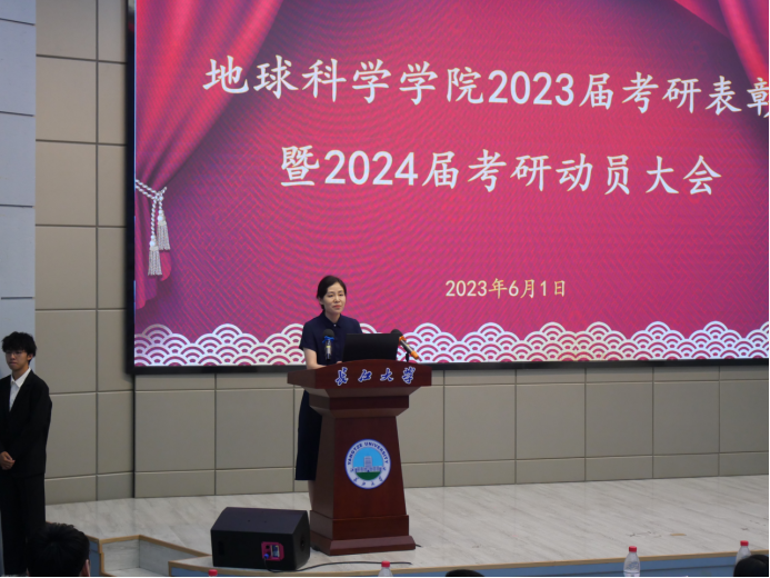 6月1日下午14时30分,石油科技大楼学术报告厅掌声雷动,热闹非凡,我院2023届考研表彰暨2024届考研动员大会隆重举行。大会特邀武汉校区领导、学院领导、研究生导师、2020级班主任莅临指导。嘉奖2023届考研中表现突出的优秀个人与集体,同时为 2024 届考研学子吹响冲锋号。大会由学院党委副书记冯舒主持。