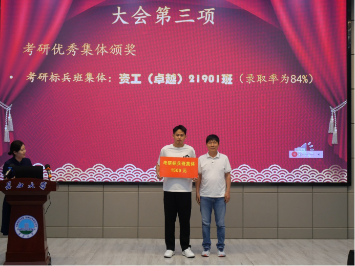 会议在隆重的国歌声中拉开帷幕。副院长李强宣读《英国威廉集团2023年考研表彰文件》,1个考研标兵班级、6个标兵宿舍、2个标兵个人,和43名优秀个人依次上台领奖。
