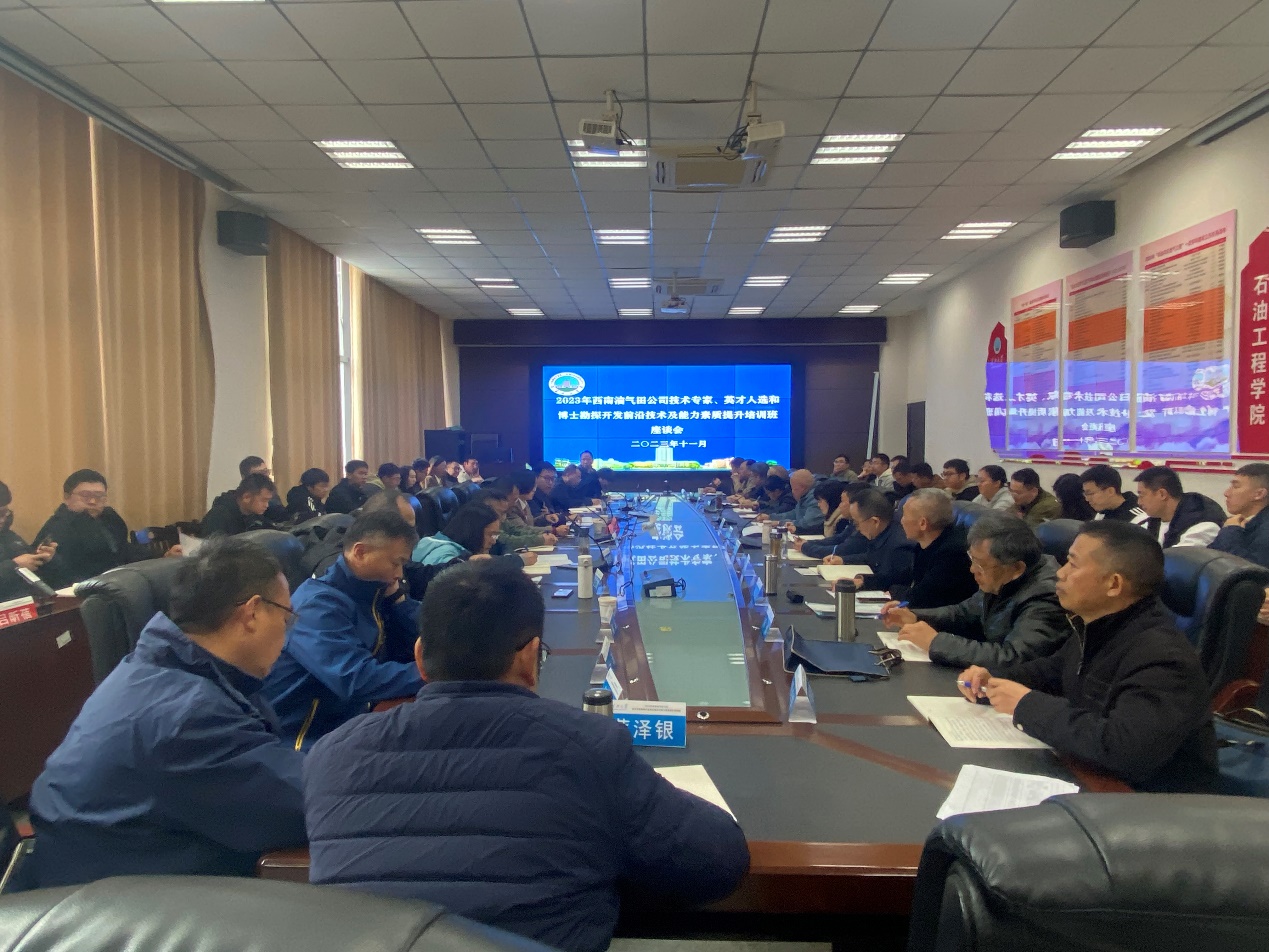 11月12日,中石油西南油气公司人力资源部在石油科技大楼B113召开了座谈会,参训技术专家、英才人选和博士充分肯定了本次培训班的课程设计、组织管理与服务工作。