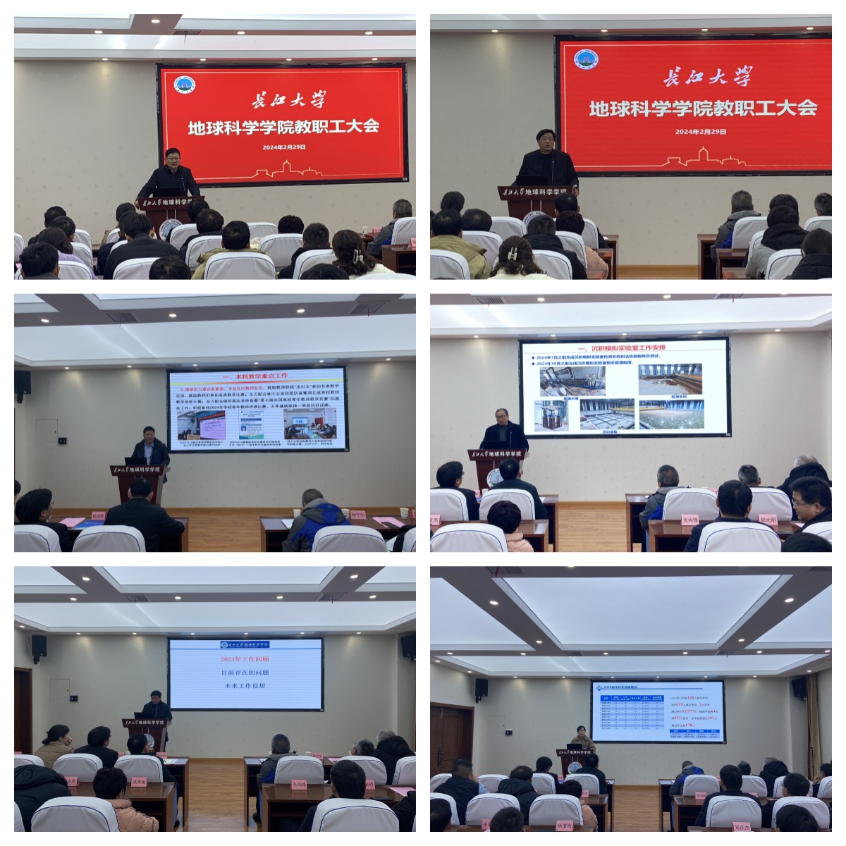 院长朱光有教授聚焦上台阶发展主题,部署年度重点工作,他充分肯定了学院过去一年取得的优异成绩,指出了学院目前存在的问题与短板。他表示,长大正进入转型高质量发展、开创冲击双一流新局面的关键时期,地科学院在学校发展大局中具有重要的战略地位,要深入贯彻学校2024年工作研讨会会议精神,以思想破冰开辟发展新赛道,围绕学校中心工作解决关键问题、瓶颈问题。力争尽快实现重大项目有落地、基金项目能倍增、纵向经费猛增长、团队建设大提升、学科建设上台阶、人才引育见成效、奖励申报有突破、本研招生质量大变化等,为实现学校“六个倍增”计划贡献英国威廉集团力量。