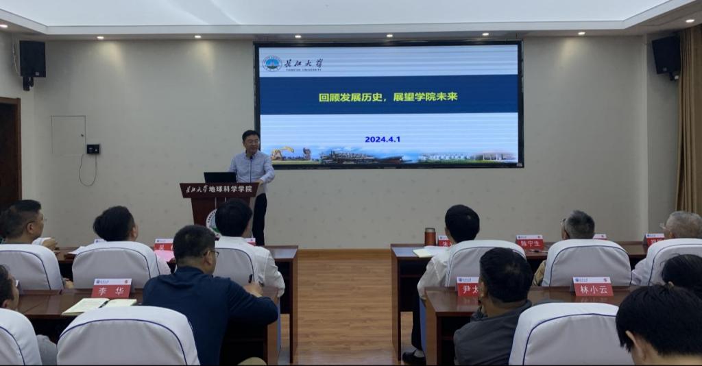 会议第二阶段,学院党委书记杨全辉主持会议。为让青年教师了解学院办学历史和文化,增强发展信心,学院邀请胡明毅教授作为讲述人,带领全院教职工学习了学院的发展历史,胡教授重点讲述了原江汉石油学院勘探系科研团队“新疆队”、 “西藏队” 和“江汉队”的科研经历,让全院教职工领略了老一辈地科学院教授的风采,学习了老一辈的无私奉献、不怕吃苦、潜心教学科研的教育家精神与科学家精神,胡教授还分享了作为地质工作者的人生感悟,他认为地质人要有吃苦耐劳的精神,要重视野外地质基本功的培养,善于提出问题和发现问题,及时对成果进行总结,他号召青年教师要以学院王铁冠、高振中、朱忠德等老一辈教师为榜样,奋力拼搏,努力工作,肩负起学院发展的重任,无愧于时代的重托。