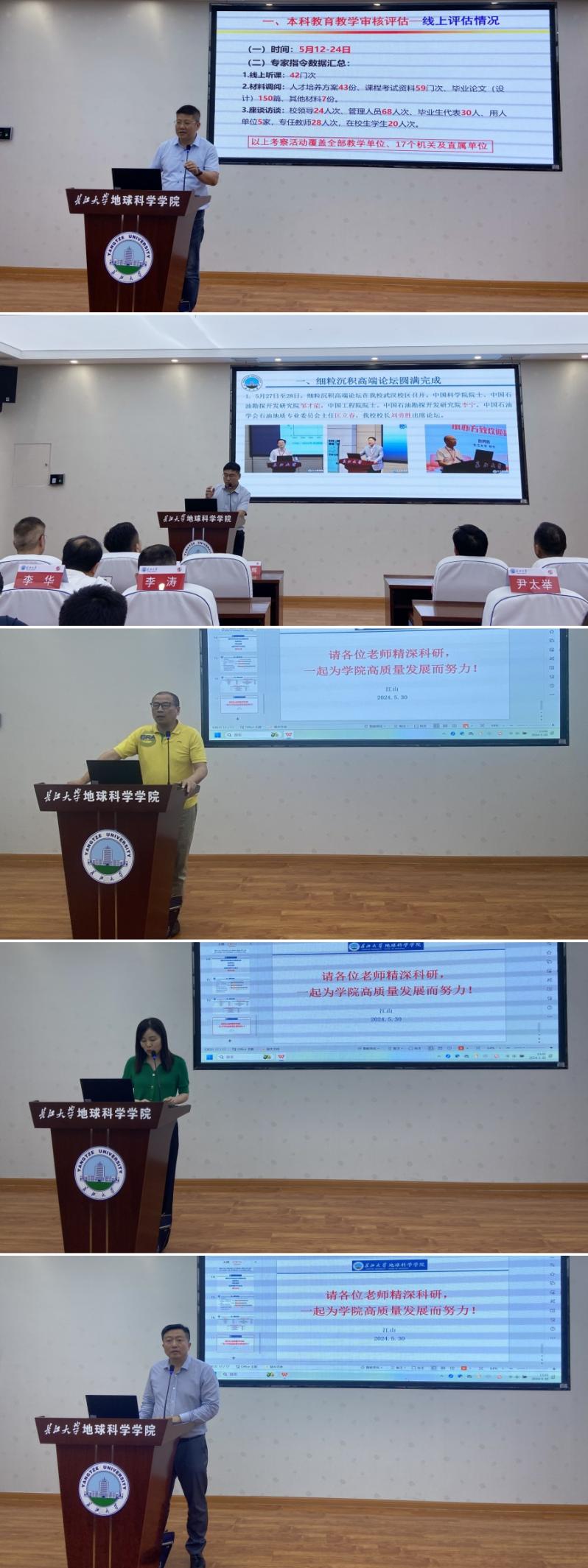 副院长胡忠贵就本科审核评估工作和近期教学重点工作进行了安排,通报了线上评估情况,对专家入校评估工作进行了详细的部署,对本科毕业论文相关事宜、青教赛和学科竞赛等重点事项进行了强调。