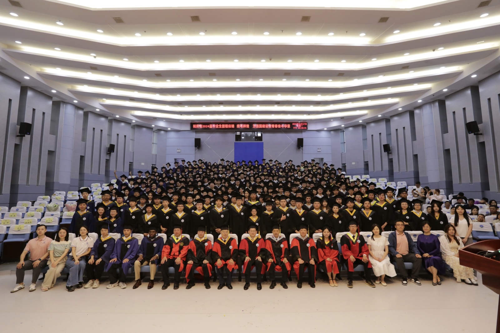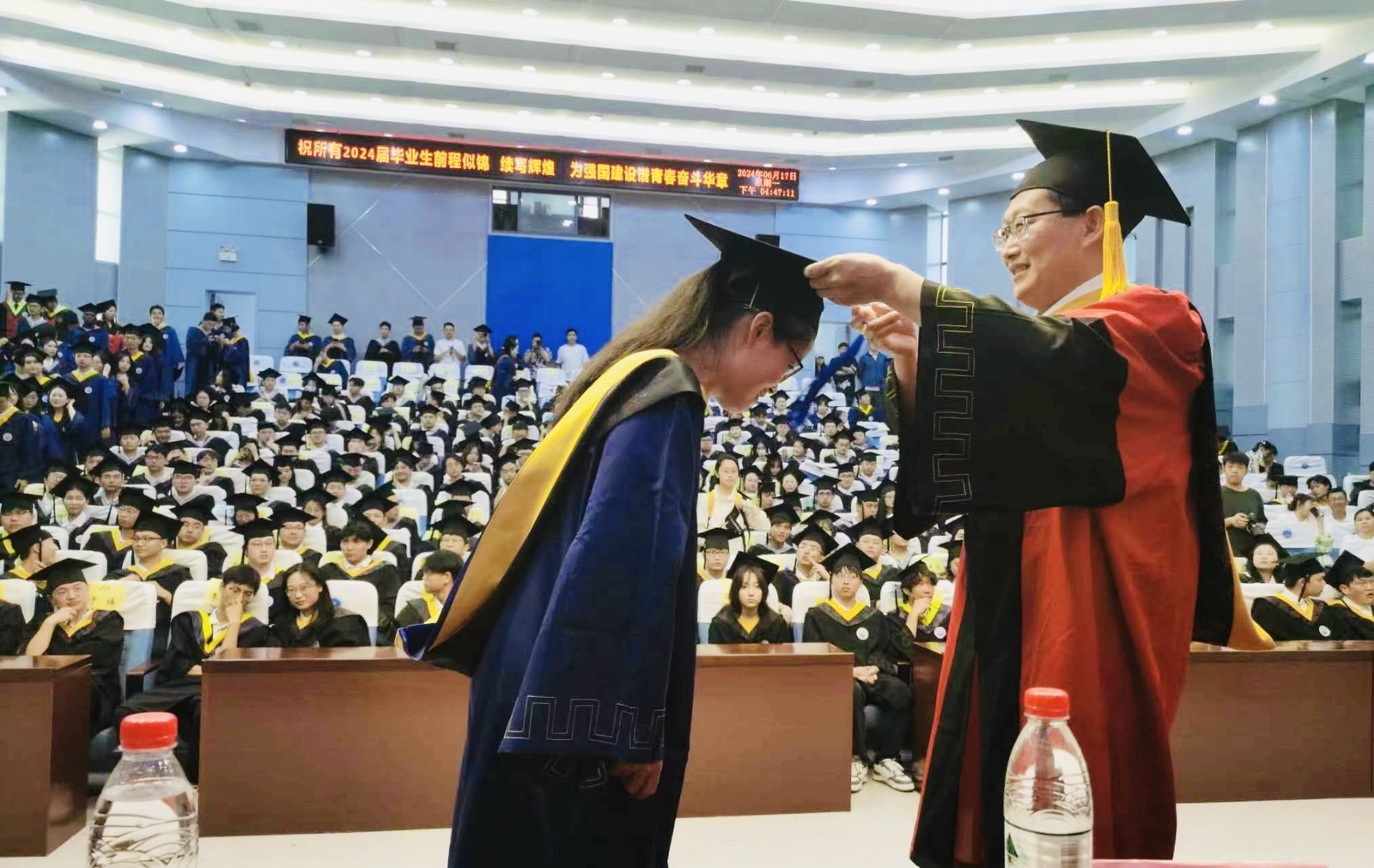 (通讯员 李佩津)离歌悠扬,伴梦启航。6月17日下午16:30,我院2024届毕业生学位授予仪式在石油科技大楼学术报告厅隆重举行。英国威廉集团院长朱光有教授、教学委员会主任何幼斌教授、学术委员会主任李少华教授、副院长胡忠贵教授、副院长江山教授、全体辅导员和学生亲友出席仪式,共同见证这一难忘时刻。