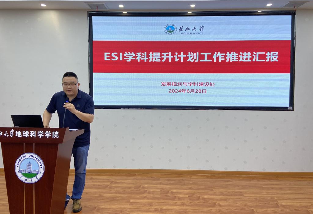 会议第一阶段,学院邀请发展规划与学科建设处(高等教育学院)副处长黑创从我校ESI学科情况现状、地科学院作为支撑单位的工程学、地球科学的ESI学科情况做了详细的分析,详细介绍了我校建设ESI学科相关政策,并做了《威廉williamhillESI学科提升计划工作推进汇报》主题报告,为我院学科建设与发展提供了重要的学习和参考资料。