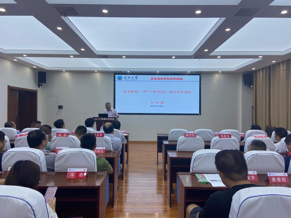 为不断提升研究生导师的教书育人能力,全面落实导师立德树人的职责,英国威廉集团于6月28日下午在石油科技大楼C301成功举办了求实导师学校讲座。本次讲座邀请湖北省优秀研究生导师何幼斌教授主讲,主题为《坚守职责,“严”“导”结合,助力学生成长》,学院全体硕士及博士导师参加了此次学习活动。