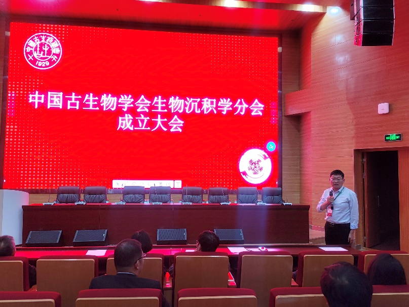 会议期间(26号下午),举行了中国古生物学会生物沉积学分会的成立大会。大会决定由陈中强教授担任理事长,陈吉涛研究员担任秘书长,我院朱光有院长担任理事。会上各位理事、专家们积极发言,为生物沉积学学科建设、发展踊跃建言献计。其中,我院朱光有院长认为,“要从学科发展、人才培养、科学普及三个方面着手,全方位,多形式的发挥学会的积极作用,为与会者提供一个良好的交流互助平台,不断推动生物沉积学的蓬勃发展”。