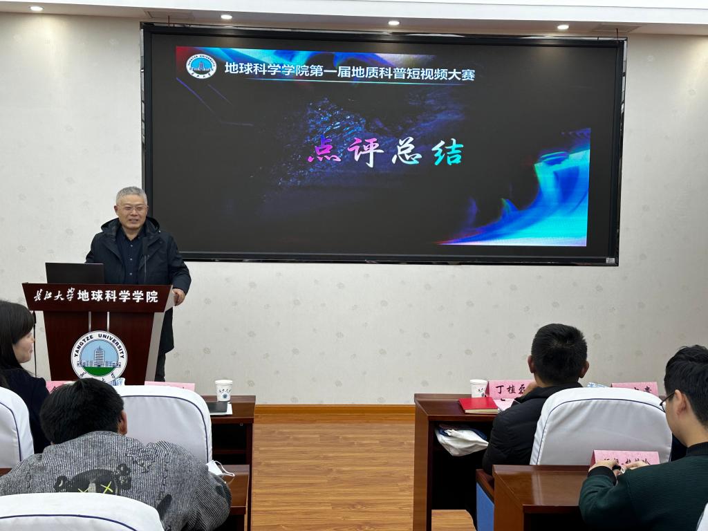丁植磊老师在致辞中对本次大赛给予了高度评价,强调科学普及与科技创新同等重要,赞扬本次活动促进了不同学院和专业之间的学生交流,极大地丰富了校园文化生活。何幼斌老师在总结发言时,称赞了参赛选手们展现出的创新思维和扎实的专业功底,鼓励大家在未来的学习和研究中继续探索地球科学的奥秘,以更加新颖有趣的方式将地学知识普及给更广泛的公众。