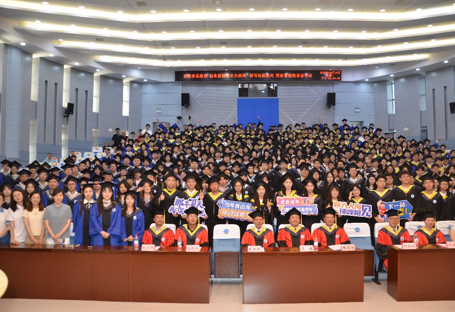 “汇入长江,奔向大海”标语寄托着毕业生对未来的期待,未来或许有暗礁湍流,有迷雾险滩,但他们眼中的光、心中的火,必将照亮逐梦之路,在时代的浪潮中书写属于自己的壮阔篇章。毕业生范秀武满怀感恩地说:"感恩学院的悉心培育,感谢老师的谆谆教诲、同学的携手相伴。新征程已启,我将在地质勘探的道路上步履不停,解锁黑色黄金蕴藏的密码!”