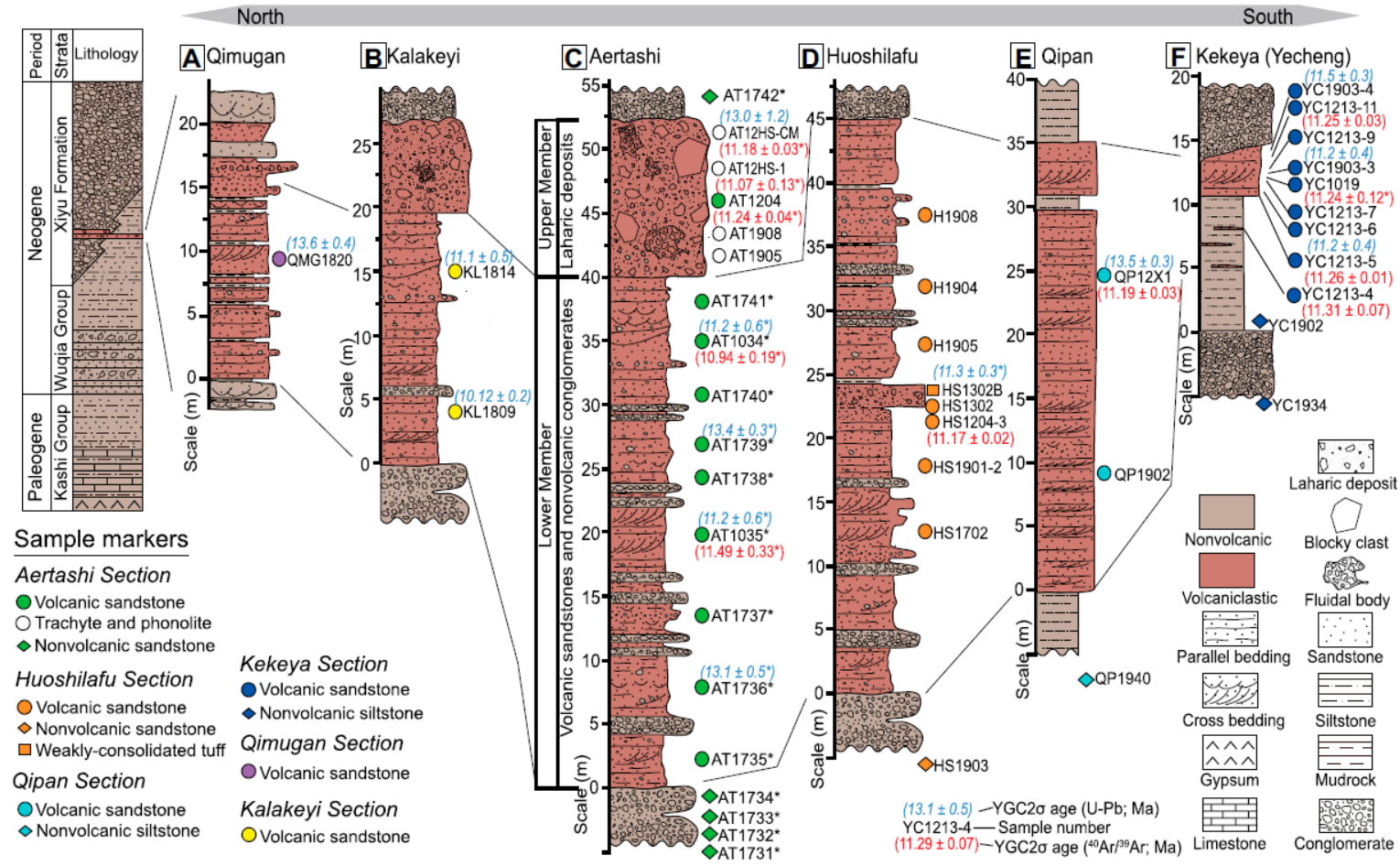 尤为重要的是,研究通过沉积学、年代学与物源等综合证据证明:这些碎屑只能源于火山喷发同期的快速沉积,而非后期风化再搬运。这意味着火山喷发年龄与地层沉积年龄在构造时间尺度上完全等效——该火山砂岩层成为塔西南中新世的等时标志层,为区域地层对比与重大地质事件定年提供了关键"时间锚点"。