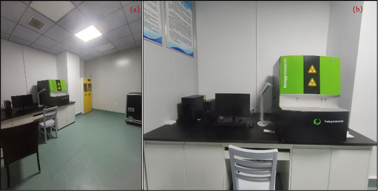 图1 主设备间(a:主设备间布局;b:德国进口OSL主仪器)