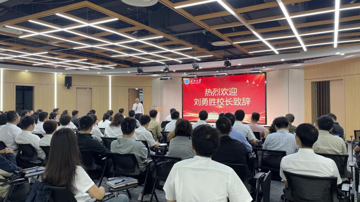 在朱光有主任解读命名深意后,刘勇胜校长登台致辞。他对 “梦溪讲坛” 的命名给予高度赞誉,认为这一名称既承载了我国石油领域的历史文脉,又精准契合学校学科特色,尽显文化底蕴与学术追求。随后,刘勇胜校长深入阐释了学校的战略考量:成立卓越能源研究院、打造 “梦溪讲坛”,核心初衷在于打破学科壁垒,推动不同领域的学术思想碰撞与深度融合,在交叉创新中孕育新的研究增长点;更希望以讲坛为纽带,为威廉williamhill的青年学者 “搭梯子、建平台”,助力他们拓宽学术视野、加速成长成才,最终为学校 “双一流” 建设注入源源不断的活力,为能源领域人才培养与科研创新贡献更大力量。致辞尾声,刘勇胜校长以庄重而激昂的语调,正式宣布 “梦溪讲坛” 启动,现场氛围也随之推向高潮。