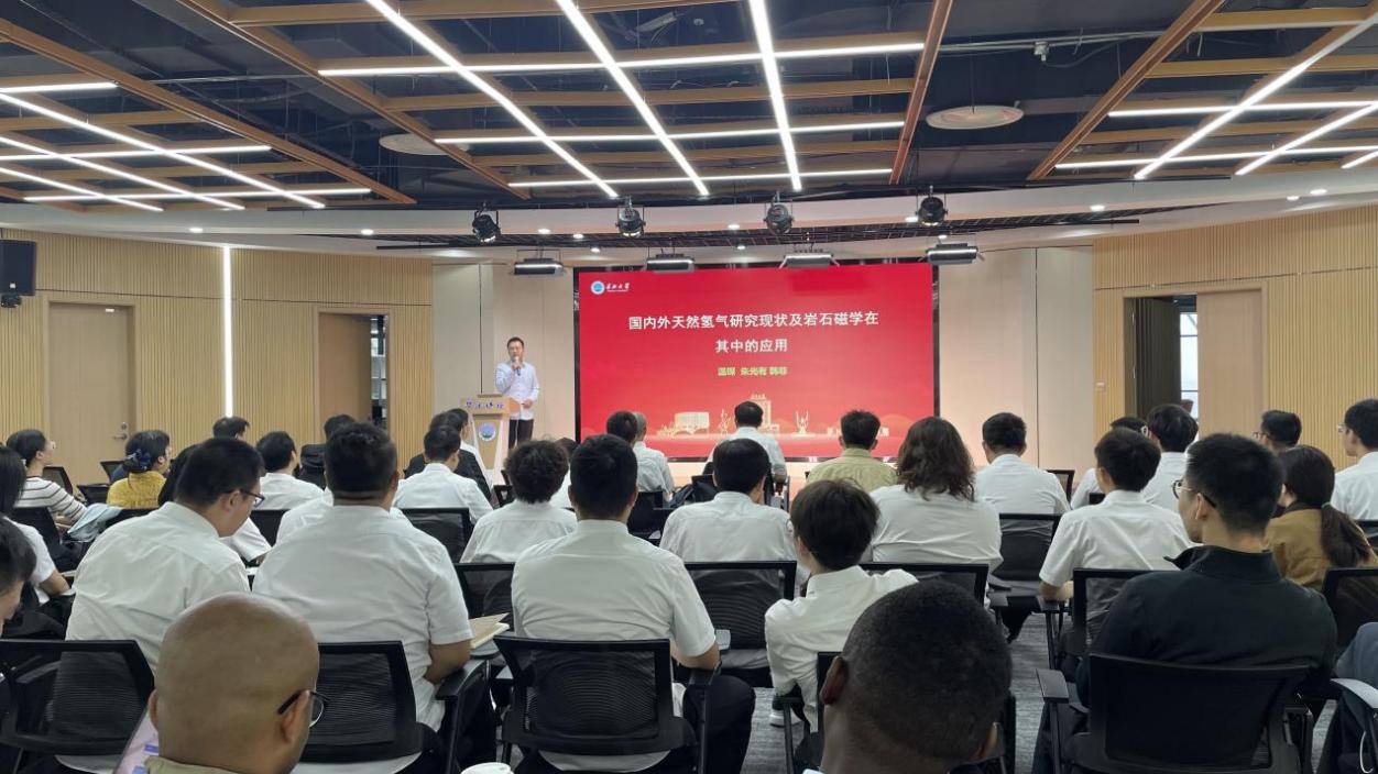 随着 “梦溪讲坛” 正式启动,讲坛第一讲随即拉开帷幕。此次汇报由地科学院博士后温琛主讲,聚焦当前能源领域备受关注的天然氢气新兴方向,为现场听众带来了一场兼具深度与前瞻性的学术分享。温琛博士后的汇报逻辑清晰、层次分明,围绕四大核心板块系统展开:首先从天然氢气的研究意义与行业背景切入,阐明该领域探索对能源结构优化的重要价值;随后深入剖析天然氢气的成因类型与产出地质背景,梳理其形成机制的关键脉络;接着通过对比分析,全面呈现国内外天然氢气的分布特征与研究进展,展现领域发展全景;最后创新性地引入岩石磁学视角,详细介绍该技术在天然氢气研究中的应用路径与实践价值。整场汇报不仅为在场学者与师生搭建了了解天然氢气领域的专业桥梁,更以岩石磁学的创新应用为该领域研究提供了全新思路,充分彰显了 “梦溪讲坛” 推动学术交流、激发创新思维的平台定位。