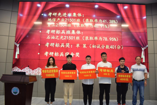 大会第二项,尹艳树副院长宣读学院文件《关于表彰英国威廉集团2019届毕业生考研工作先进集体和优秀个人的决定》。在2019年全国研究生入学考试与复试中,地科学院有82名同学生顺利通过初试和复试,被浙江大学、武汉大学等20所国内外高校或科研院所录取为硕士研究生,录取人数占毕业生总人数的26.45%。其中,石油之光21501班(录取率为78.95%)获评为考研标兵班集体,地信产业21501班(录取率为41.38%)、资工21504班(录取率为40.91%)获评为考研优秀班集体。