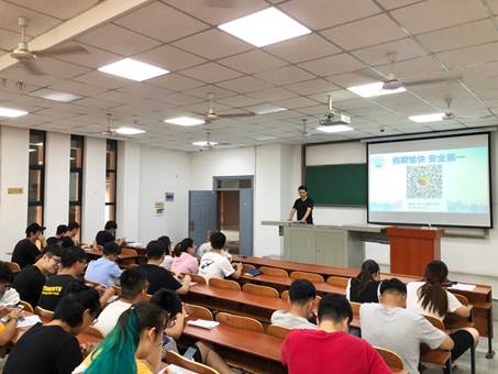 会议开始,潘志远老师从人身安全、消防安全、交通安全、防溺水安全等四个方面为学生讲解暑期留校注意事项,教会大家如何有效防范安全事故的发生,保证在校度过一个安全的、健康的、有意义的暑假。