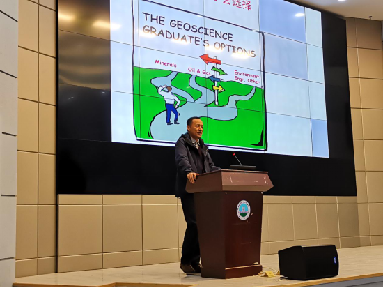 2016级资工(石油之光)曹日洲作为优秀学生代表发言,他以严于律己、自强不息、事在人为三个关键词,向新生们分享了自己攻克六级、取得专业第三的学习经历。本科生新生代表,地信22002班的陶潇桐表达了入学后的激动与憧憬,作为“生于非典,考于新冠”的一代,要在大学四年“改变自己”,保持“不平凡”。研究生新生代表,矿产QX201的武建伟号召全体同学“以创新求突破、以自律严过程、以健康做保障,唱响属于自己的地科好声音。”