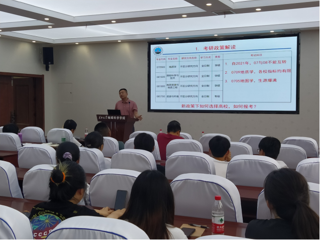 接着,吴楠副院长就我院研究生报考及奖助学金政策进行了详细解读,并给同学们详细分析了近三年我院报考研究生情况,对新政策下如何选择高校,如何报考给出宝贵的建议。
