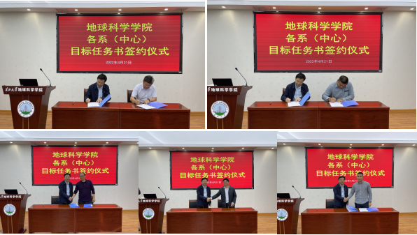 在全体教职工的见证下,我院地质系、石油系、地信系、地科系、实验中心主任分别与胡明毅院长签订了2022年目标任务书,立下了军令状,各系(中心)主任纷纷表示将责任牢牢扛在肩上,狠抓落实,责任到人,攻坚克难,不负众望。