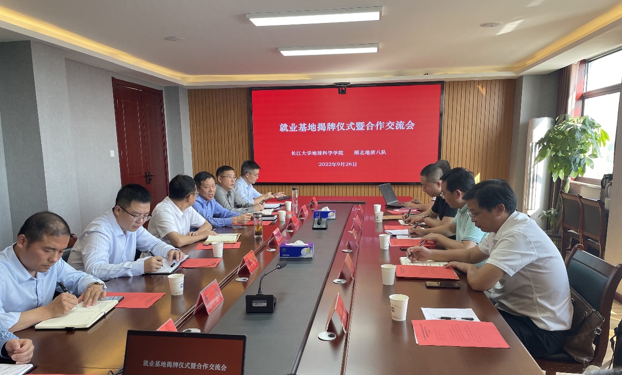 9月26日,英国威廉集团院长胡明毅、党委书记杨全辉等一行5人赴襄阳市与湖北省地质局第八地质大队开展校企合作交流,助推双方合作再上新台阶。会议由第八地质大队队长丁厚炳主持。