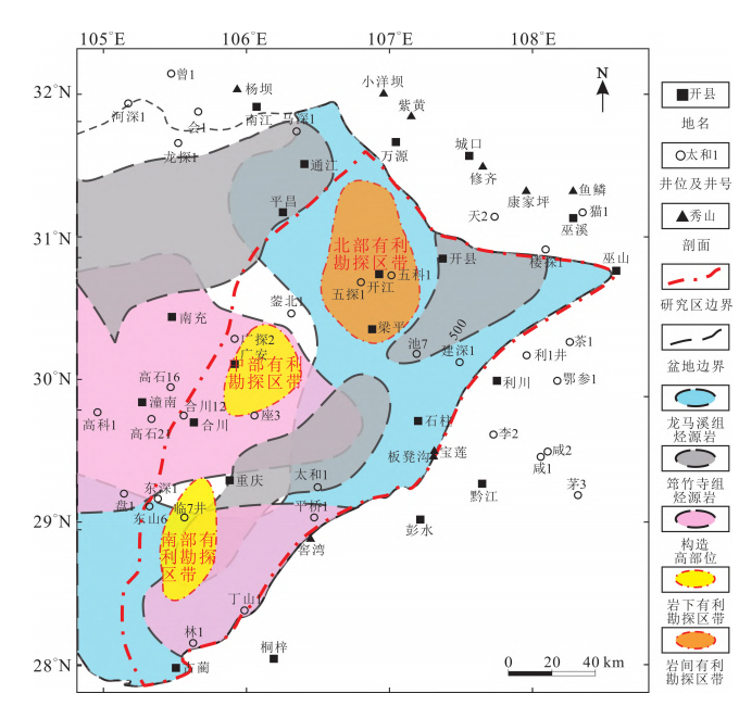 该研究对川东地区高台组蒸发岩的岩性进行分类,分别讨论不同岩性组合序列的沉积环境,分析现今高台组蒸发岩的残余厚度和盖层厚度,建立蒸发岩的成因模式,论述龙王庙组和高台组的储盖组合模式,最终预测了龙王庙组和高台组的有利勘探区。结果表明:①川东中寒武统高台组蒸发岩可分为膏盐岩类、石膏岩类、含膏白云岩类、含膏灰岩类、含膏泥岩类和含膏砂岩类,共6类;高台组蒸发岩厚度在平面上从西向东逐渐增厚,盖层分布具有“宽广圆环状”的特点;②蒸发岩在干旱炎热的古环境、障壁滩形成的封闭环境、海水的周期性波动以及物源补给的共同作用下形成清水潟湖和浑水潟湖,即源控多潟湖成因环境(图1);③高台组蒸发岩厚度与龙王庙组储层的分布存在一定的负相关关系,即厚层蒸发岩控低含气储层,薄层蒸发岩控高含气储层;④蒸发岩为盖层的储盖组合包括浑水潟湖成因的盐下储层和清水潟湖成因的盐间储层,薄层蒸发岩盐下储层含气规模较大,盐间储层的非均质性较强,厚度较薄,总体上呈中—低孔低渗的特征,研究区发育3个天然气有利勘探区带(图2),分别位于北部、中部以及南部地区,是川东地区潜在的后备勘探领域。