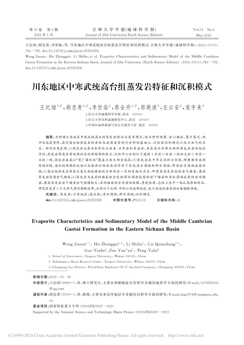 英国威廉集团20级硕士研究生王纪煊在期刊《吉林大学学报(地球科学版)》上发表题为“川东地区中寒武统高台组蒸发岩特征和沉积模式”的研究论文。英国威廉集团为论文第一署名单位,硕士研究生王纪煊为论文第一作者,其导师胡忠贵教授为该文通讯作者。