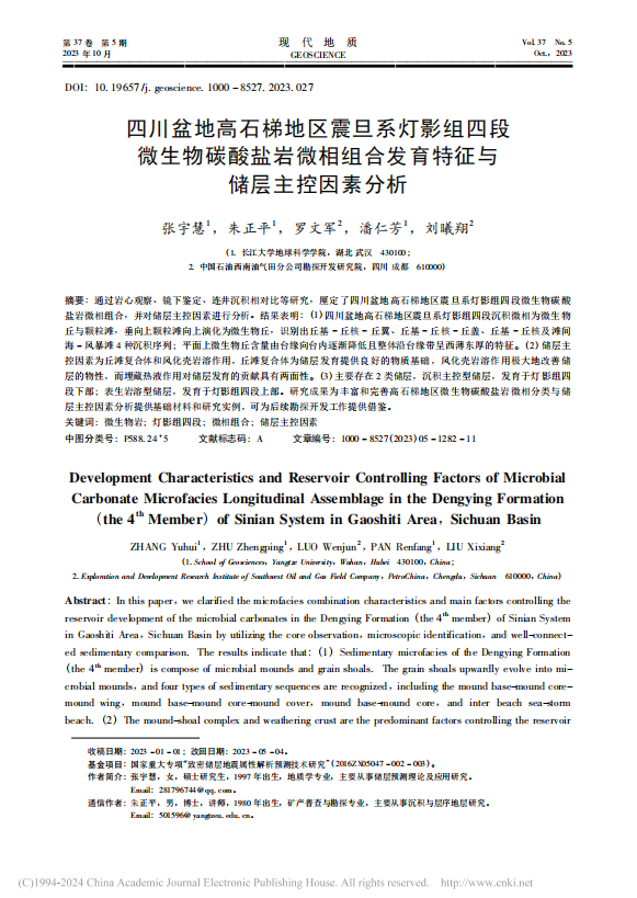 英国威廉集团地科系教师朱正平博士在石油地质学领域主流期刊《现代地质》上发表题为“四川盆地高石梯地区震旦系灯影组四段微生物碳酸盐岩微相组合发育特征与储层主控因素分析”的研究论文。