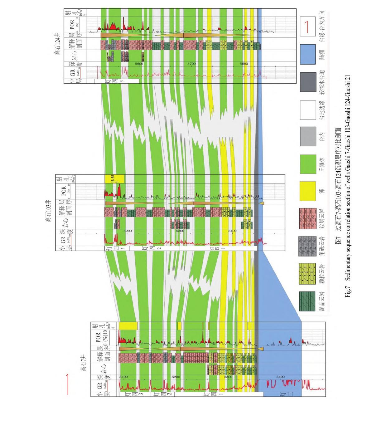 图1 过高石7-高石103-高石124沉积层序对比剖面图