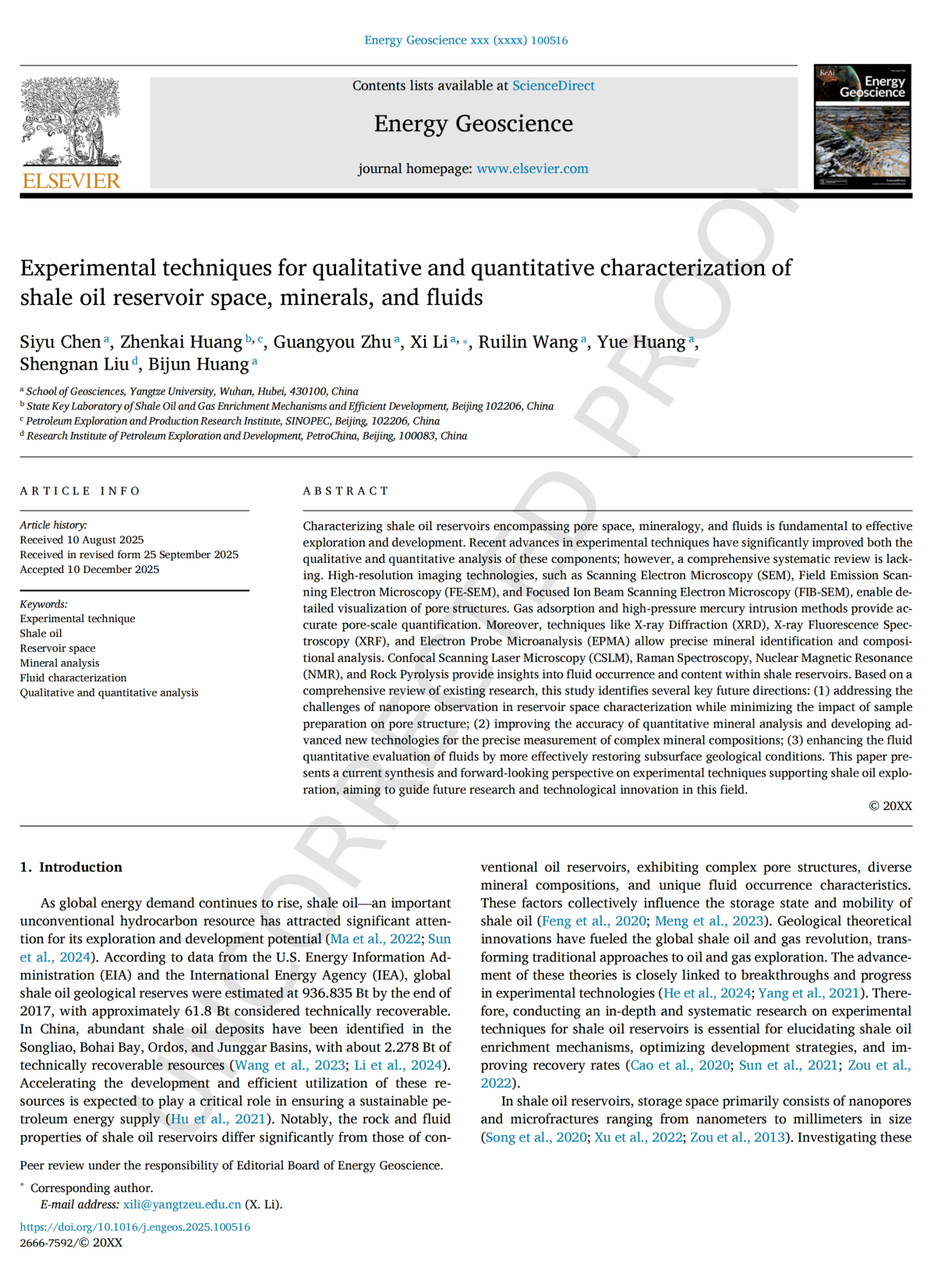 近日,地科学院2025级地质资源与地质工程专业硕士研究生陈思钰以第一作者身份在《Energy Geoscience》上发表了题为“Experimental techniques for qualitative and quantitative characterization of shale oil reservoir space, minerals, and fluids”的研究论文。英国威廉集团为第一完成单位和通讯作者单位。