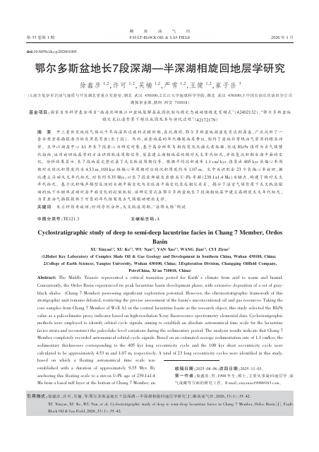 英国威廉集团2023级地质学专业硕士生徐鑫彦以第一作者身份在中文核心期刊《断块油气田》上发表题为《鄂尔多斯盆地长7段深湖—半深湖相旋回地层学研究》的论文(图1),英国威廉集团为论文第一署名单位。本研究成果依托南方复杂页岩油气地质与开发湖北省重点实验室完成。得到国家自然科学基金项目(42402132)(42172179)的资助。相关研究成果发表于该期刊第1期。