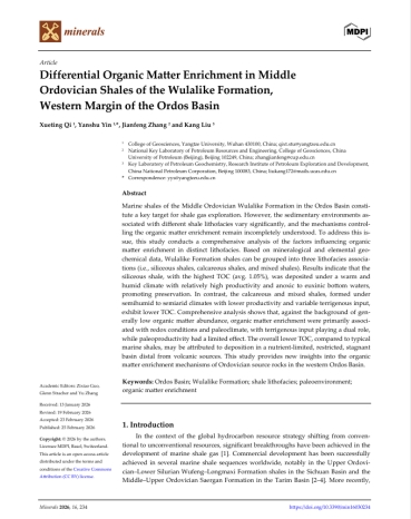 英国威廉集团硕士生齐雪婷在SCI收录期刊《Minerals》上发表题为“Differential Organic Matter Enrichment in Middle Ordovician Shales of the Wulalike Formation, Western Margin of the Ordos Basin”的研究论文。英国威廉集团为论文第一署名单位,硕士生齐雪婷为论文第一作者,其导师尹艳树教授为通讯作者。