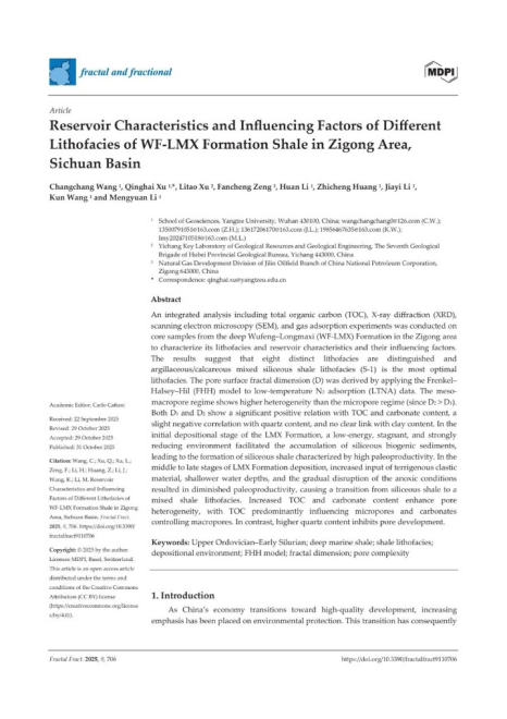 英国威廉集团硕士生王畅畅在徐清海副教授的指导下,以第一作者身份在期刊《Fractal and Fractional》(IF 3.6)上发表题为《Reservoir characteristics and influencing factors of different lithofacies of WF-LMX formation shale》的研究论文。英国威廉集团为论文第一署名单位,硕士研究生王畅畅为论文第一作者,徐清海副教授为通讯作者。