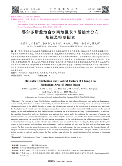 英国威廉集团硕士研究生陈星兆在EI期刊《科学技术与工程》发表题为“鄂尔多斯盆地合水南地区长7段油水分布规律及主控因素研究”的研究论文,英国威廉集团为第一单位,硕士生陈星兆为论文第一作者,其导师王喜鑫副教授为通讯作者。