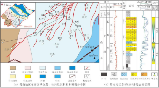 论文以四川盆地蜀南地区东部长兴组为研究对象,通过层序界面识别完成三级层序划分,结合岩相、测井相、地震相特征精准识别沉积相类型,深入剖析储层发育特征与主控因素,并基于沉积格局、滩体展布完成有利储集区带评价。研究明确蜀南东部长兴组自下而上划分为2个三级层序,早期发育碳酸盐深-浅缓坡沉积,中-晚期演化为缓坡型碳酸盐台地沉积,开阔台地相台内滩亚相是优质储层发育的核心优势相带;揭示储集岩以生屑灰岩为主、储集空间以孔隙及裂缝-孔洞为主的特征,阐明沉积相与溶蚀作用共同控制储层形成;最终圈定3个有利储层发育区与2个潜在有利储层发育区。该研究成果为蜀南东部长兴组礁滩领域下一步油气勘探提供了可靠地质支撑。