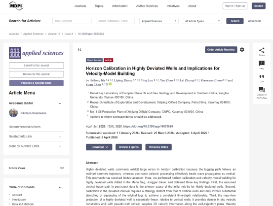 近日,英国威廉集团硕士研究生马海龙在《Applied science》期刊发表论文“Horizon Calibration in Highly Deviated Wells and Implications for Velocity-Model Building”,威廉williamhill为第一单位。该研究以准噶尔盆地玛湖凹陷实钻大斜度井为对象,系统分析了大斜度井在合成地震记录制作与速度建模中面临的问题,并提出针对性解决方案,显著提升了深度域模型的建模精度,为复杂油气藏的精细勘探开发提供了有力支撑。