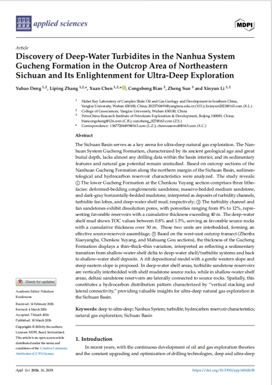 论文链接:Discovery of Deep-Water Turbidites in the Nanhua System Gucheng Formation in the Outcrop Area of Northeastern Sichuan and Its Enlightenment for Ultra-Deep Exploration