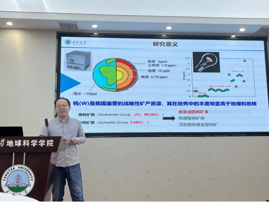 袁禹特任副教授首先回顾了金属稳定同位素的研究现状,并剖析了金属稳定同位素作为一种重要的地球化学工具在解决重大地质问题方面的优势和存在的问题,并重点讨论了当前热门的钨(W)同位素的研究现状、存在的争议及潜在的科学问题。随后,通过以石岛碱性杂岩体为例,精确刻画了岩浆结晶分异过程中不同矿物结晶分异对稳定W同位素分馏的影响。另一方面,通过对比岛弧岩浆和后碰撞岩浆体系W同位素分馏行为的差异,进一步明确了控制W同位素分馏的主要因素。本报告从地球化学的角度为理解战略性矿产W在岩浆体系中富集、迁移和成矿机理提供了新的视角。后续可以将该方法应用于古老的岩石样品,有望为揭示早期地球演化提供新的约束。