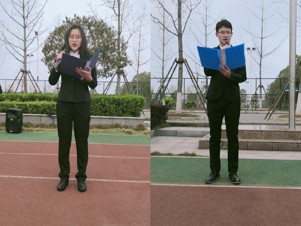 两位同学讲话结束后,赵琪带领全体同学进行了“三早、四走、两不”的学风宣誓——“坚持早起床,早锻炼,早自习;坚决走出寝室,走进教室,走下网络,走向操场;学习不作假,考试不作弊”。同学们声音洪亮,激情澎湃,展现了我院学子的良好风貌和积极践行誓词的决心。