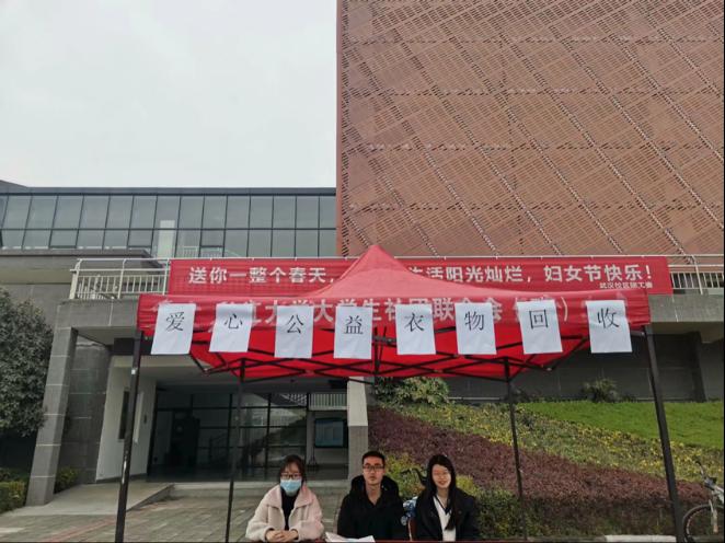 3月11日至17日,团委实践部在武汉校区开展了一次旧衣回收活动。本次活动中,校区同学们积极参与,将闲置已久或穿不了的旧衣物捐献出来,用奉献来传递自己的爱心。18日下午,实践部工作人员统一将同学们的“爱心衣物”打包,并寄送给相关衣物回收组织,希望这些衣物能给山区的孩子一些温暖。