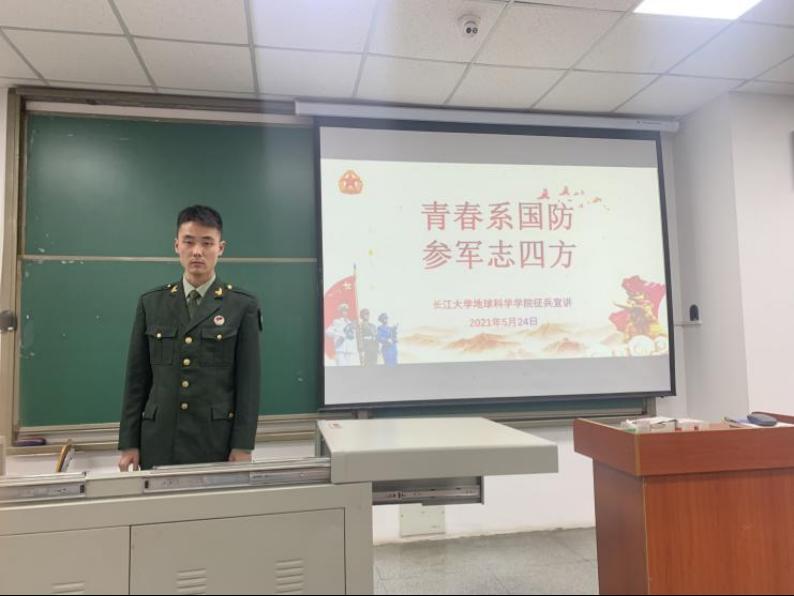 (通讯员蔡哲宇)为积极响应国家“人才强军,科技强军”的号召,贯彻落实国家征兵政策,推进国防和军队现代化建设,帮助我院学子了解大学生应征入伍政策、入伍流程,鼓励我院学生积极应征入伍,献身国防事业,我院于5月24日晚7时,于武教B-105举行“青春系国防,参军志四方”征兵动员暨退伍士兵军旅生活报告会。此次会议由张严老师主持,主讲人为老兵团成员李森(我院2014级退伍士兵)和陈帆(我院2017级退伍士兵)同学。2018级、2019级和2020级部分同学参加了会议。
