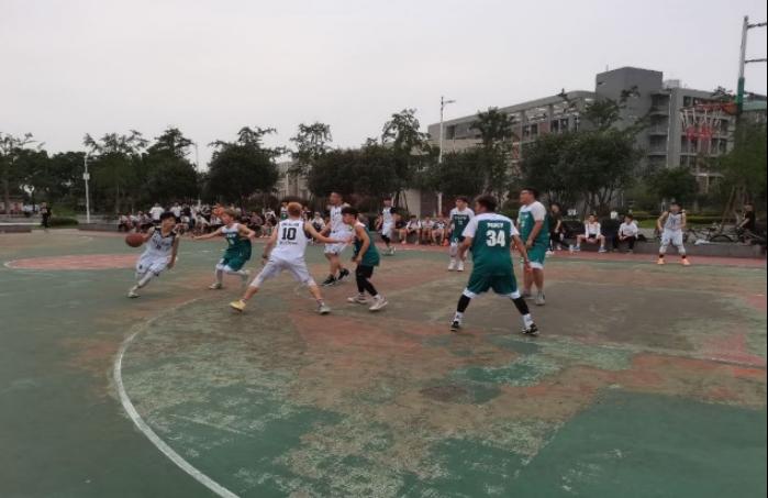 下午5时50分,伴随着哨声的响起,篮球比赛正式拉开帷幕,现场的气氛急剧攀升!狭路相逢勇者胜,双方很快进入了激烈的角逐。赛场上,双方比拼很激烈,团队之间的默契传球、完美配合。队员间熟练地运球、传球,对阵双方积极地拼抢、精准地投篮,引来围观同学一阵阵地喝彩。在场的观众情绪高涨,奋力呐喊,呐喊声充斥着整个球场,为各自支持的球队加油助威,喝彩声也一浪高过一浪。