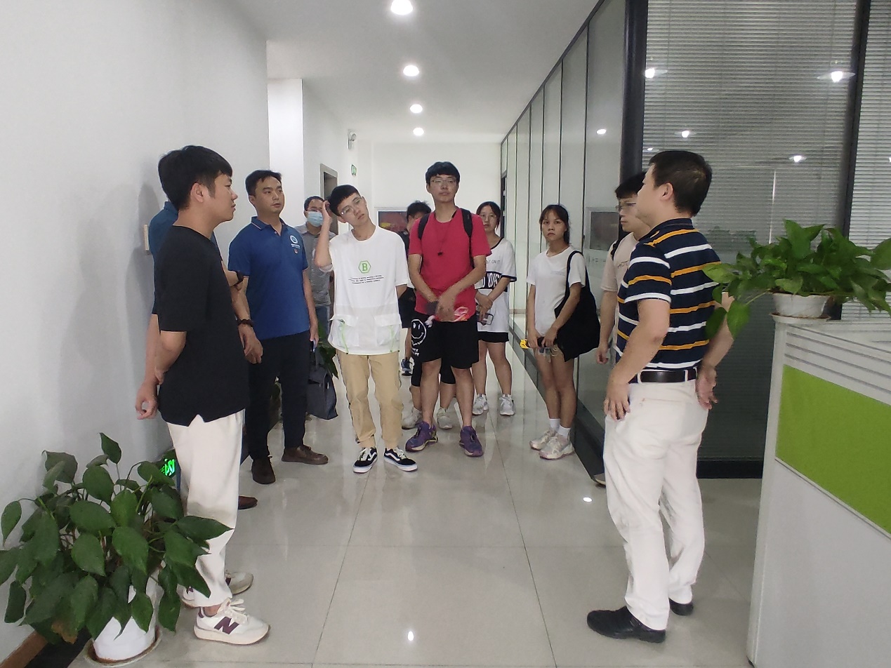 招聘经理骆封浩首先带领学生代表们参观了公司的办公环境。进入公司里面,映入眼帘的是清新的绿色。一个个绿色的办公桌隔板让人在炎炎夏日里感受到了一丝清凉,一盆盆统一摆放在办公桌上面的绿色植物让人看着生机勃勃。在这里工作的员工们都在专注地做着自己的工作,鼠标和键盘敲击声接连不断。