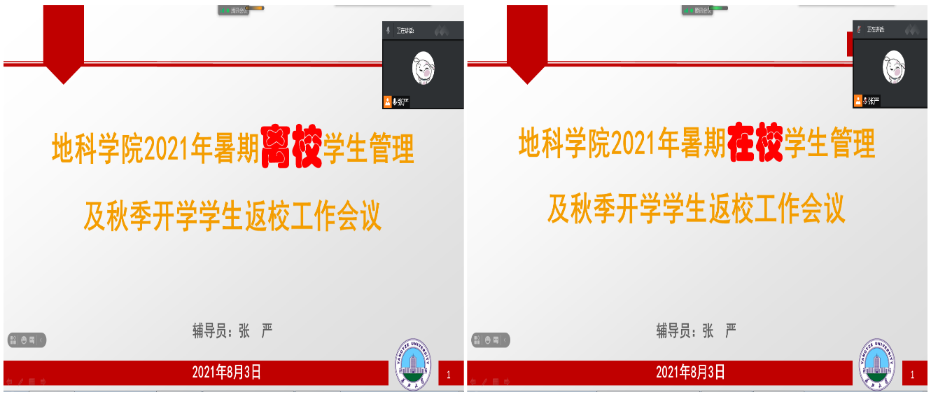 地科学院2021年暑期学生管理及秋季开学学生返校工作会议时间表