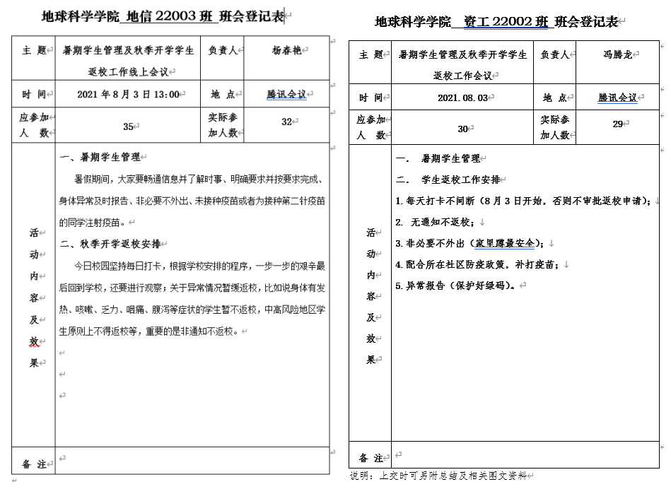 (通讯员 李永健)近期国内发生多起聚集性疫情,防控形势骤然严峻,为了确保2021年暑期学生管理及秋季学期开学返校工作平稳有充开展,我院按照疫情防控要求及学校工作方案,8月2日至3日通过线上会议的形式,各年级辅导员分校内和校外两类人员分别召开了“地科学院2021年暑期学生管理及秋季开学学生返校工作会议”会议,全体班主任参会。