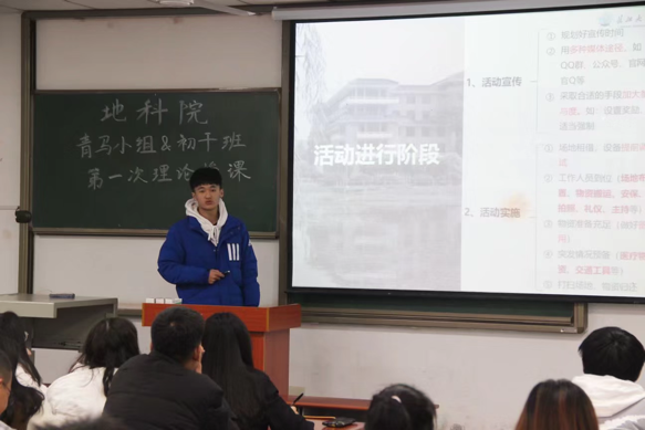 (通讯员:傅宣翔 贾凡琛)为响应团中央号召,发挥大学生骨干、共青团干部以及青年知识分子在其所在组织中的模范作用,2021年12月10日晚7时,地科学院青马小组以及学生干部初级培训班于A-106教室举行第一次理论授课。本次活动由班导陈星兆、高婧,小组长李银凤,黄汉臣及青马小组全体成员参加。